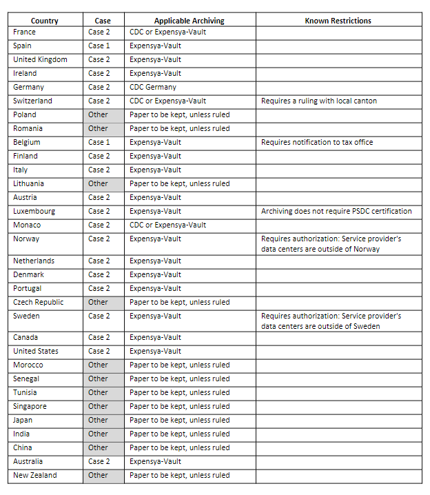Previously domiciled in Ireland, our third solution - Expensya Internal Azure-based legal storage - will now cater to specific countries via local storage:
