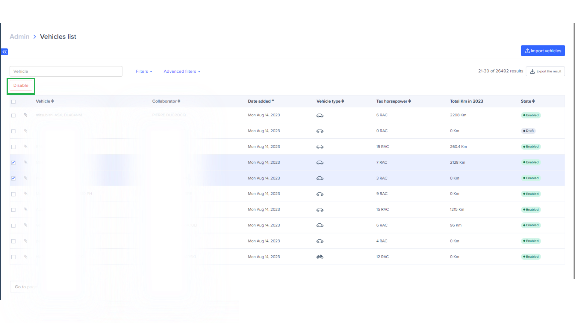 - Click on Import Vehicles.