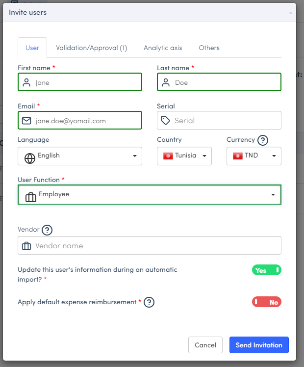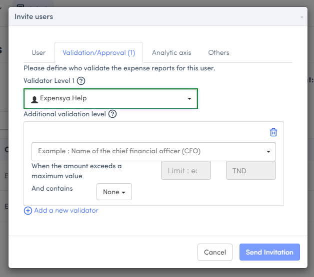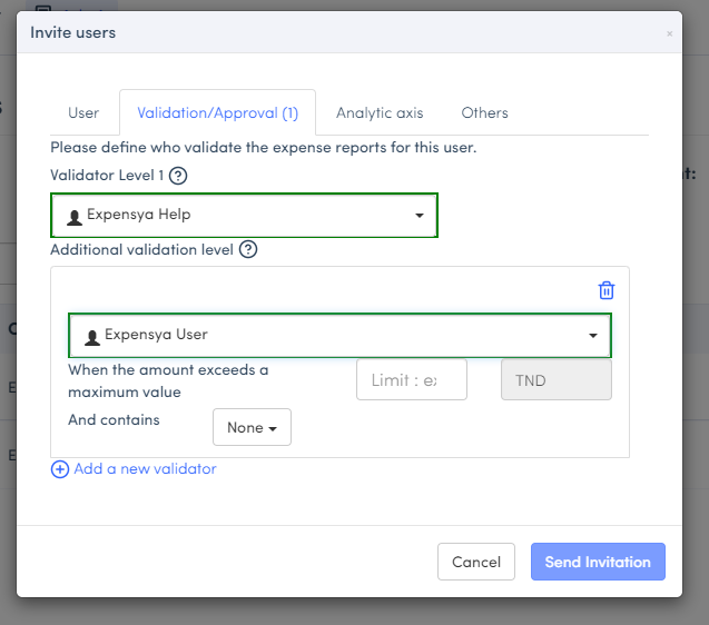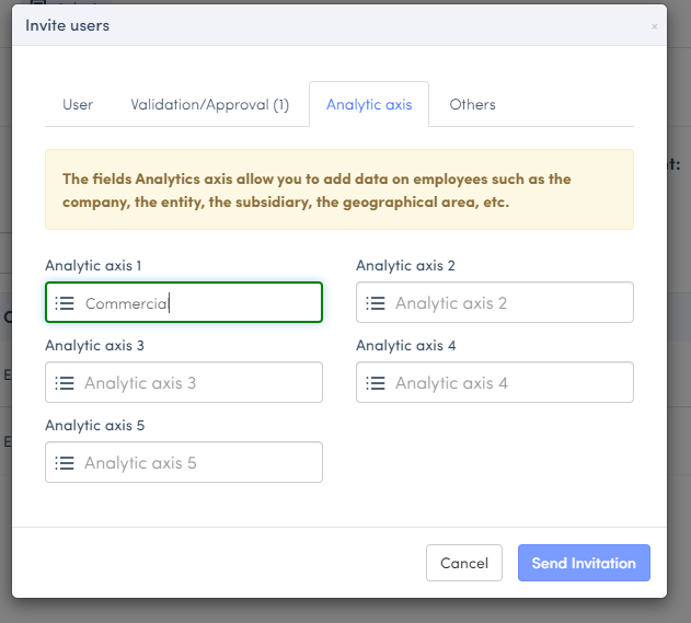 Note: It is also thanks to the analytical axes that you can create user groups. You can find more details in the following article: How to create users groups un Expensya