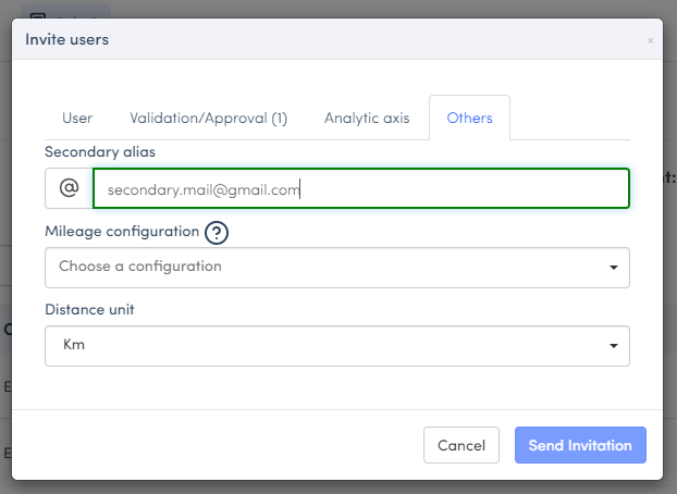 Note: You can add a secondary email address for automatic email processing of your invoices when sent to expenses@expensya.com from a secondary email address.