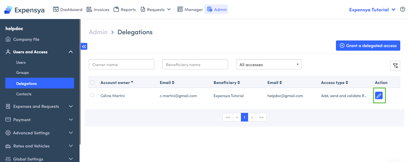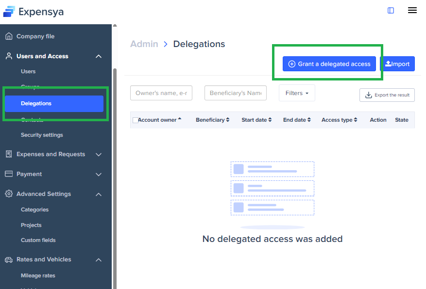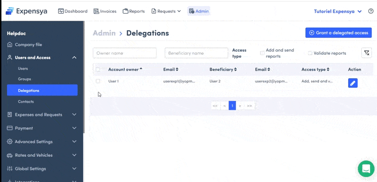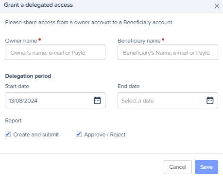 - Adding and sending expenses: the beneficiary can enter and send the expense reports instead of the owner