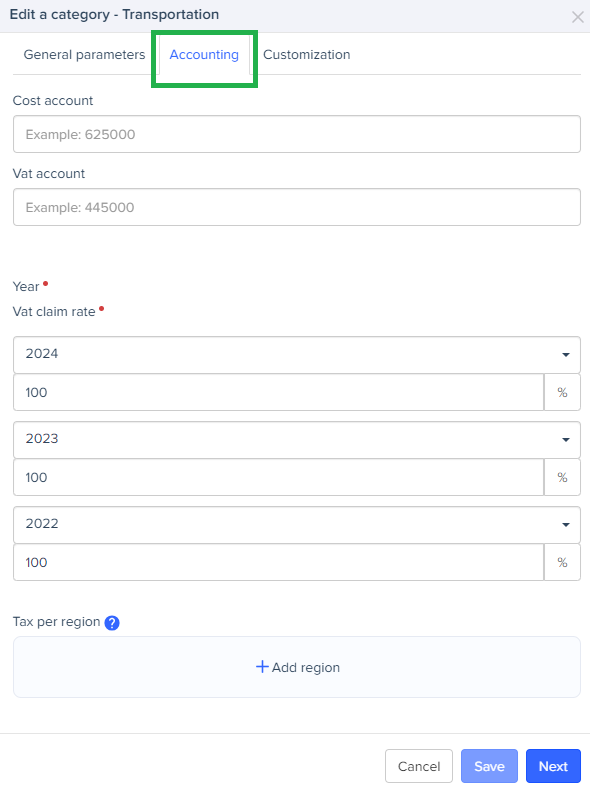 When exporting expenses, the appropriate VAT details are automatically applied based on the specified country or region of the expense. This feature guarantees accuracy and compliance, minimizing the risk of errors in reporting.