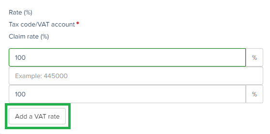 Note: Use the Add a VAT rate button to include as many rates as necessary for each region or country.