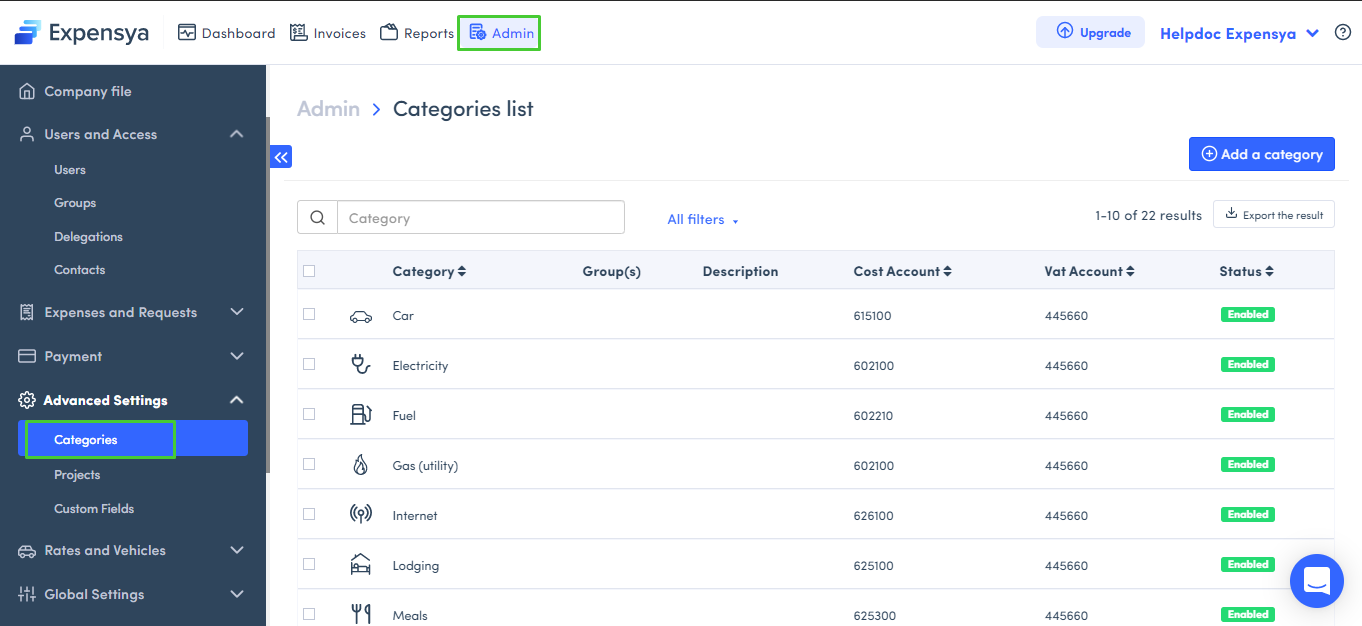 - From the Admin interface, go to the Categories section.
