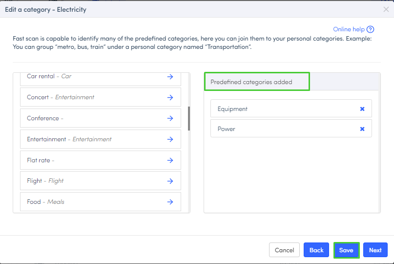- Click on Next to add predefined categories.