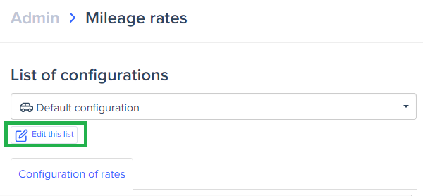 - From Admin > Rates and Vehicles > Mileage Rates, click on Edit this list.