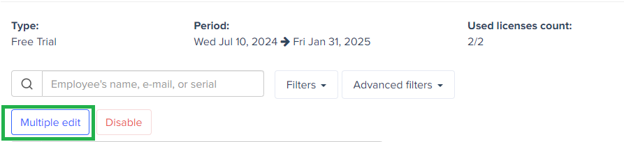 - Select multiple users, then click on Actions > Multiple Edit Users.