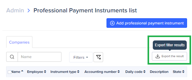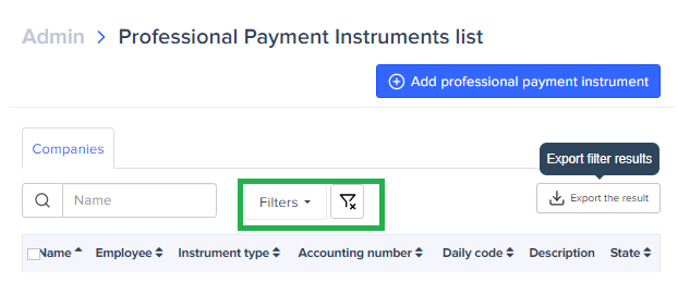 It is also possible to filter certain payment instrument by completing the appropriate filters.