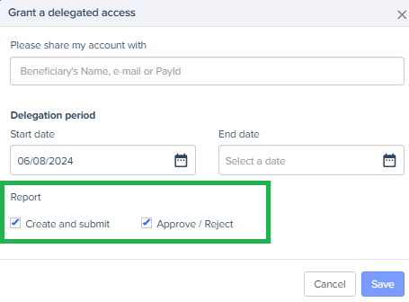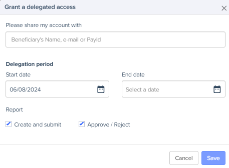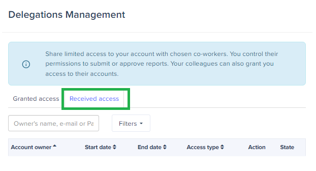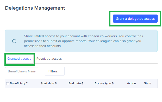 In Expensya, access delegation allows a user to grant or receive access rights to or from another account, regardless of their position.