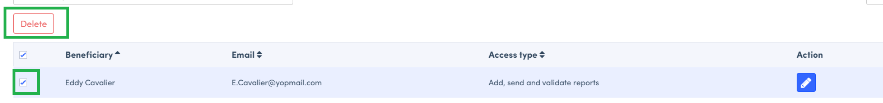 - Tick the box corresponding to the person whose access you wish to delete.