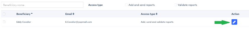 Once you have granted access to your account, you will see the name of the beneficiary and the type of access.