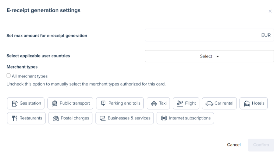 This feature provides administrators with greater flexibility, allowing them to manage electronic receipts based on parameters such as the invoice amount, the country of the user, and the expense category.