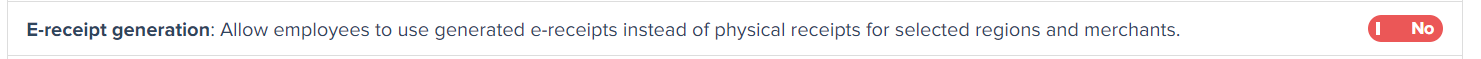 A specific regulation in the USA allows certain expenses that are paid by card and under $75 to be submitted without a receipt therefore Expensya has introduced an e-receipt generation feature, controlled through a web setting called Enable E-receipt which can be accessed and activated by the admins.