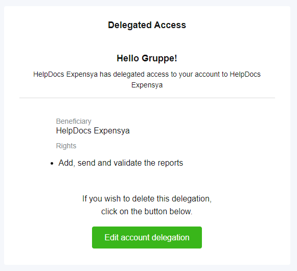 - The beneficiary of this delegation receives a notification email to inform him/her that delegated access has been granted.