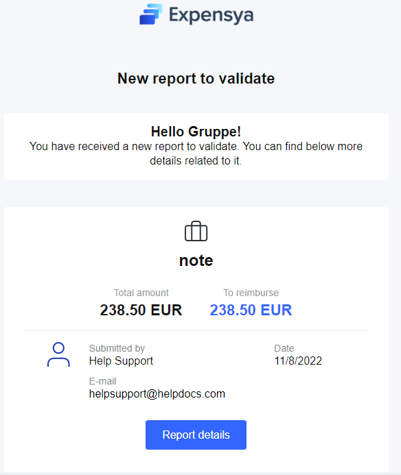 Whether it is a level 1, level 2 or level "n" approver, the latter is notified by email as soon as a report has been sent for approval.