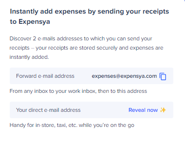 Note: This functionality complements the existing generic email address (expenses@expensya.com), which required users to forward receipts from their login or secondary email addresses.
