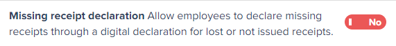 - Locate the setting Missing receipt declaration, activate its toggle and click on Update