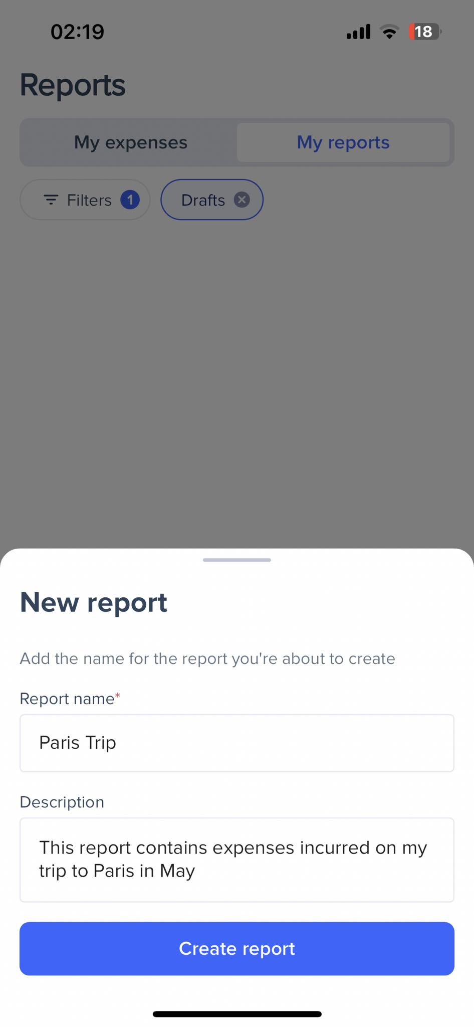 - ❌If one or more expenses are rejected: you’ll receive a reason via email. A duplicated report will be made with the rejected expense(s). This report will have the “Draft” status, allowing you to edit in accordance with our tenant’s policy.
