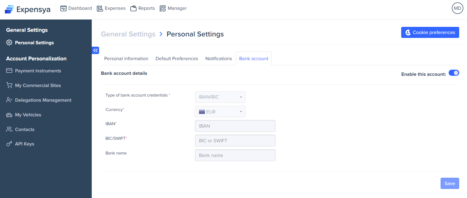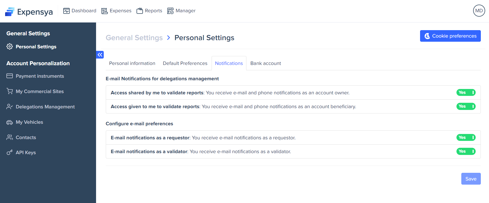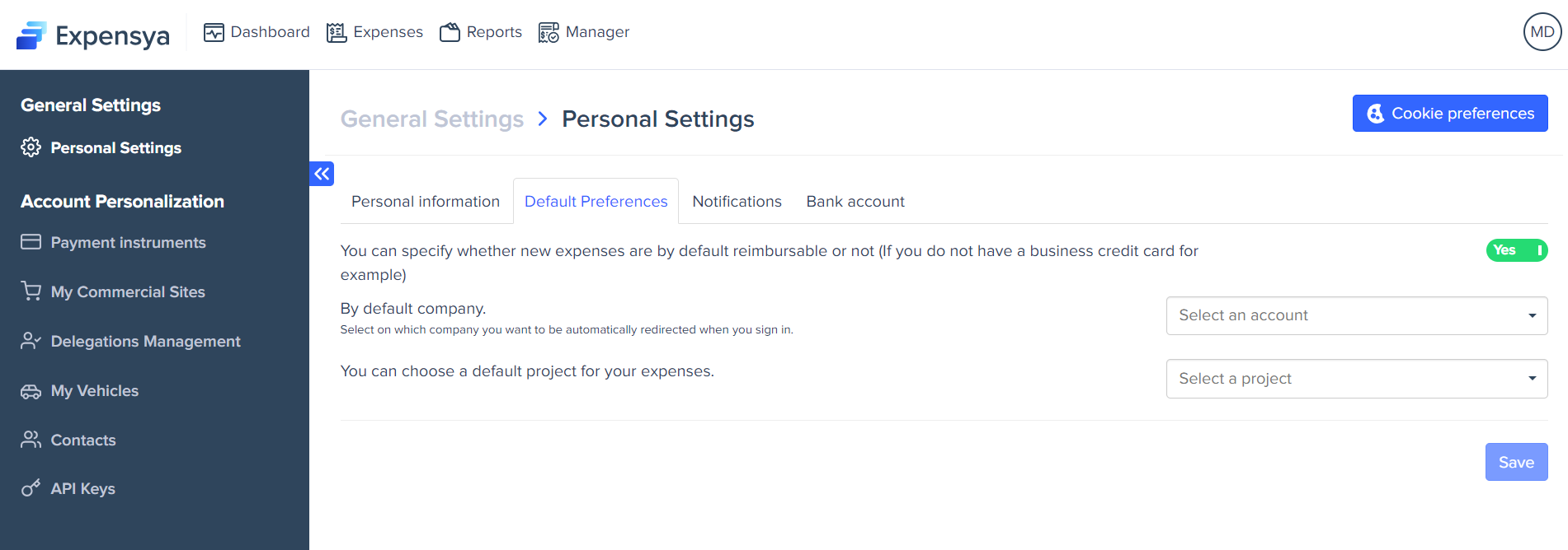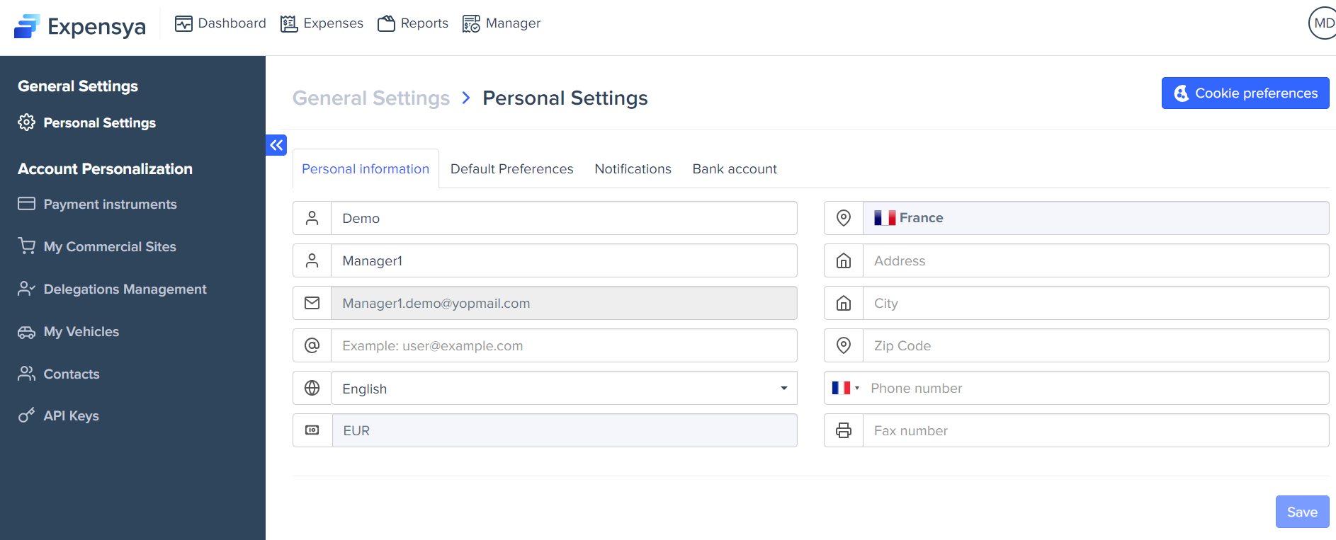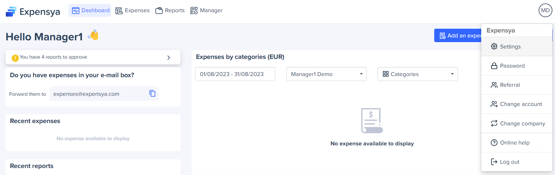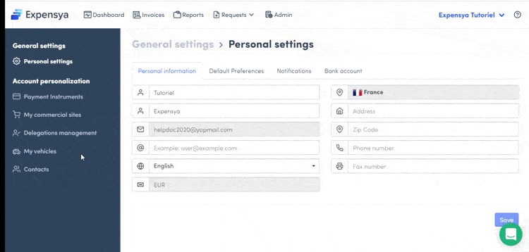 Every Expensya user can modify their account settings.