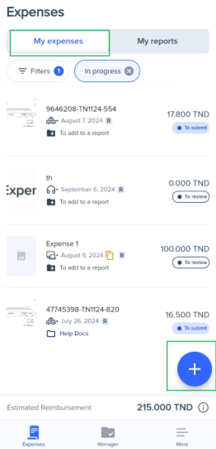 After creating a report, you can assign one or more expenses to it in various ways, either through the web or the mobile app.
