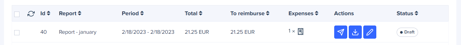 When you create a report, it is in the "Draft" state, you can add, modify or delete the invoices assigned to it. This report will only be visible to the owner.