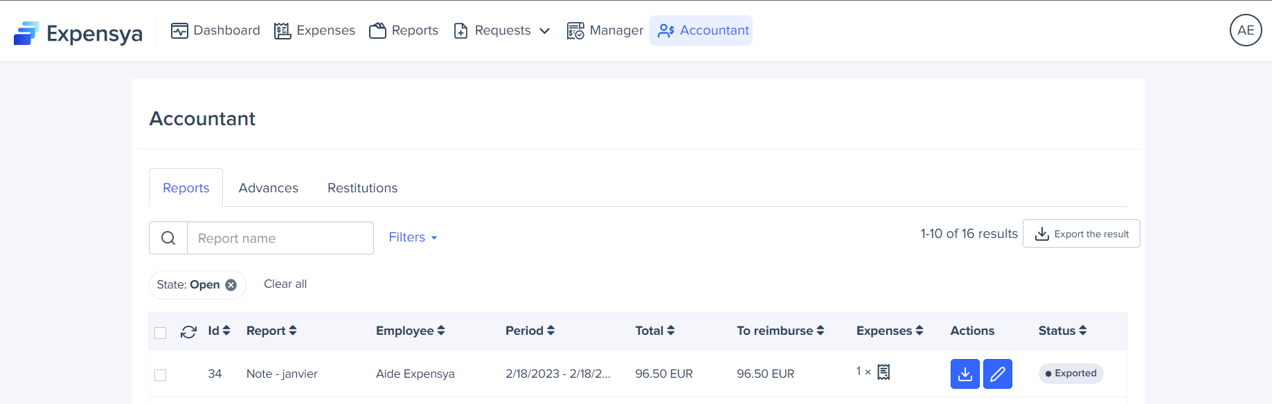 - Approve All: to approve this report, it will pass on to the additional reviewer or accountant (depending on the approval flow set up by the tenant's admin). The report status will change to 'Exported'.