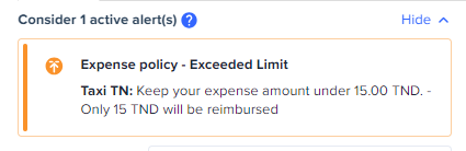 Expensya displays an alert when an expense report violates the tenant's expense policy.