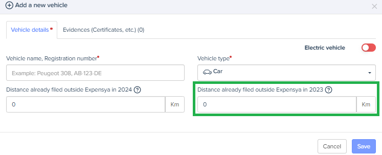 Note: You must fill in the Distance already filed outside Expensya field if you have already been reimbursed for mileage charges outside Expensya during the current year.