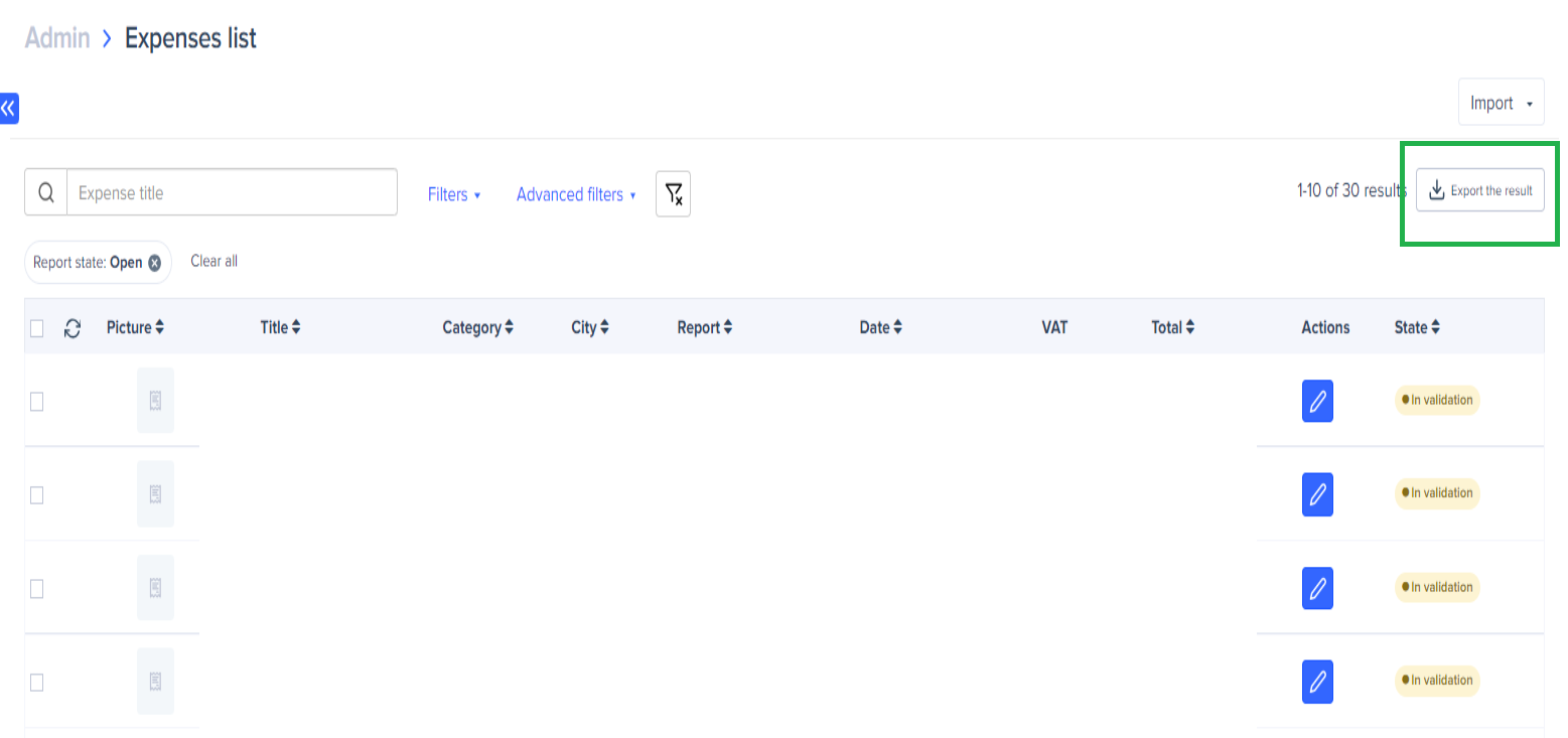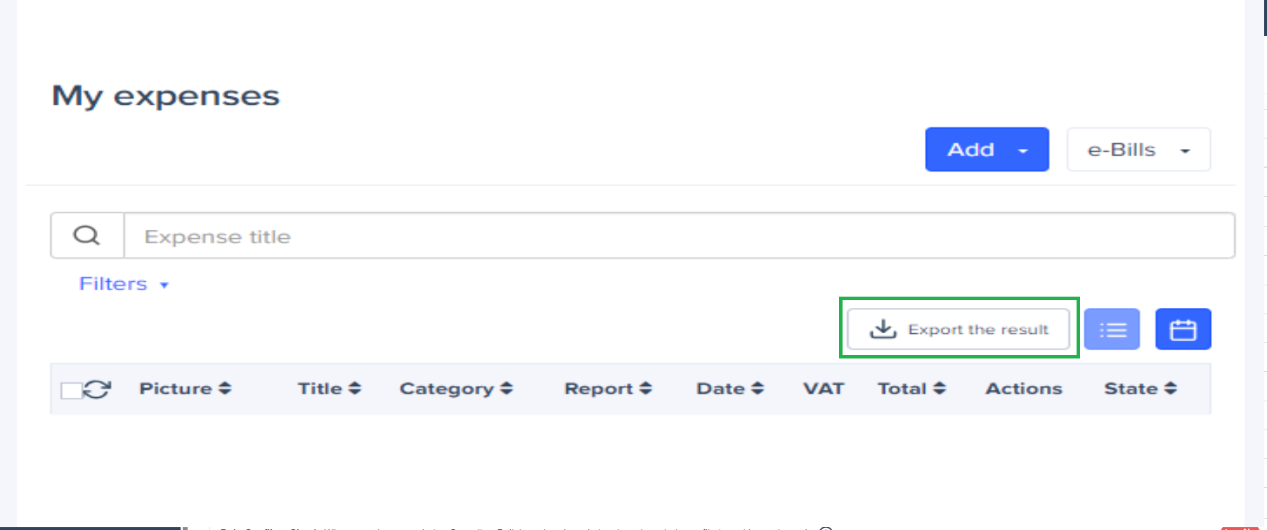 From the users' account, Expenses tab