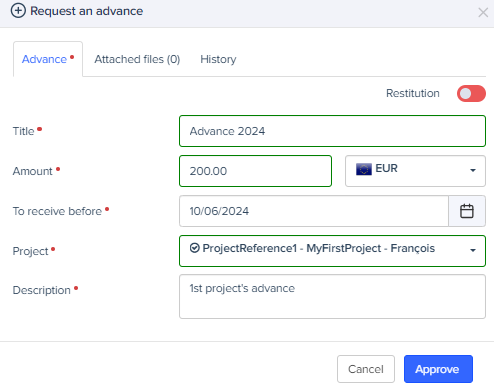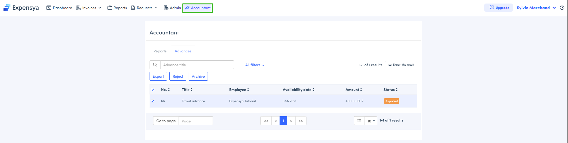Once approved by the manager or the account administrator, the advance request is sent to the accounting department where it will either be archived or rejected by the accountant.