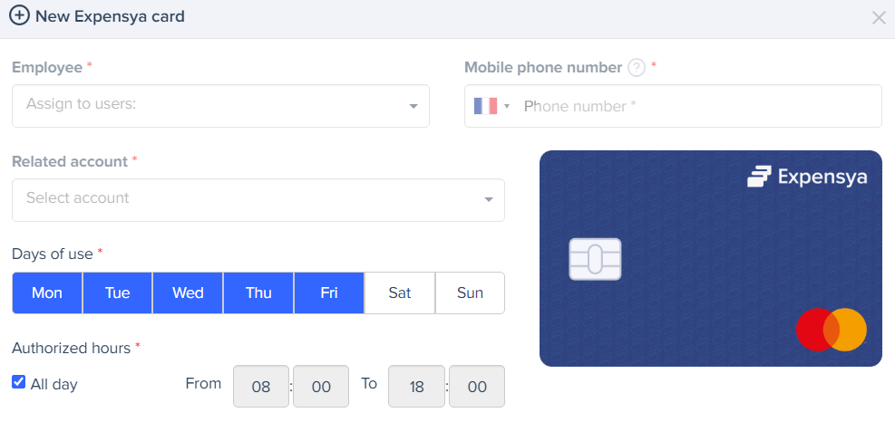 - The employee should already have an enabled virtual Expensya card. For more details : How to provide virtual Expensya card(s) to employee(s) ?