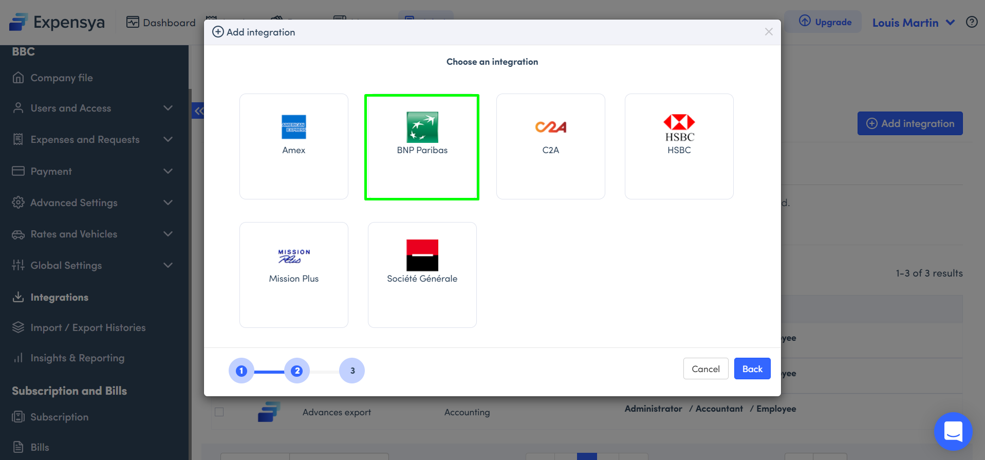 As an admin on Expensya, you can activate a bank integration from the website to import your bank card statement.