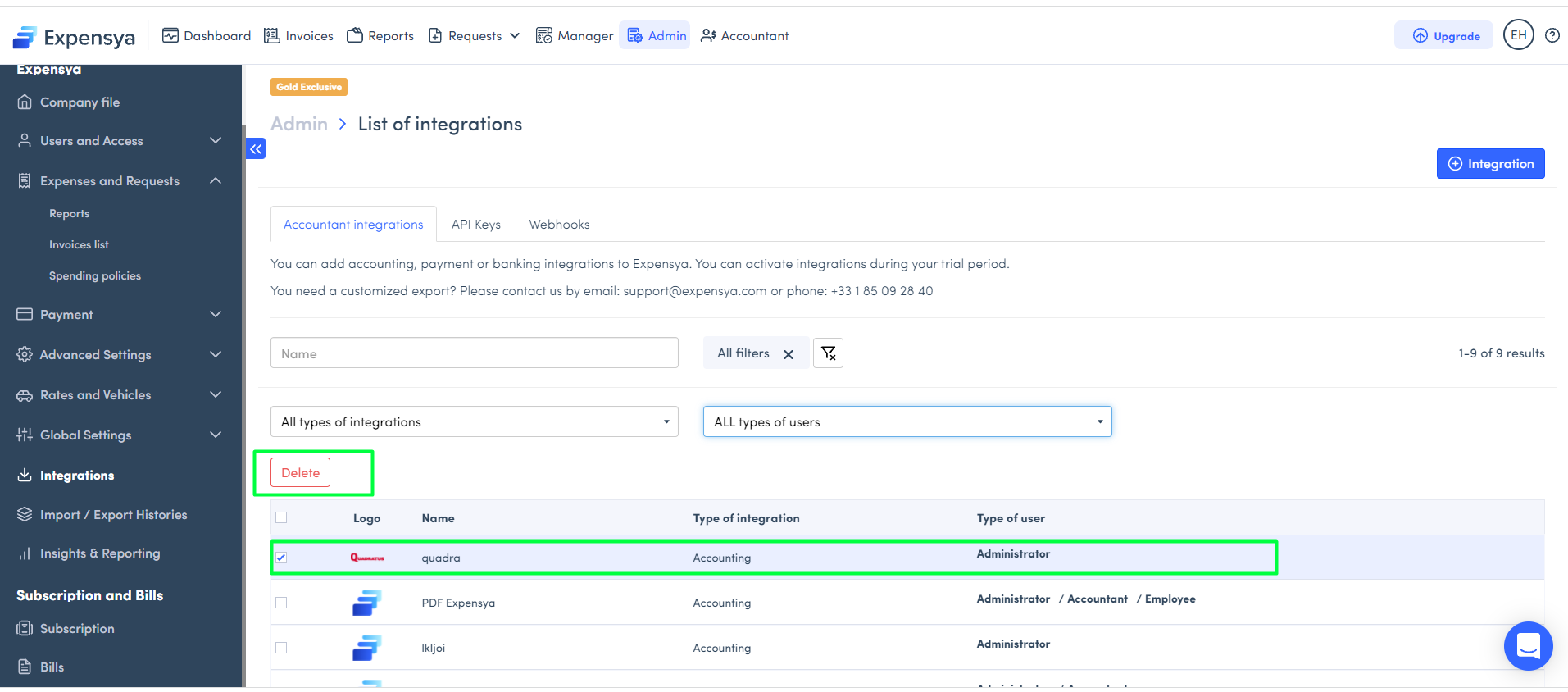 - Go to the Administration tab, Integrations submenu,