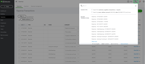 Expensya allows you to send your reports and invoices to Quickbooks. Once exported, you can find them:
