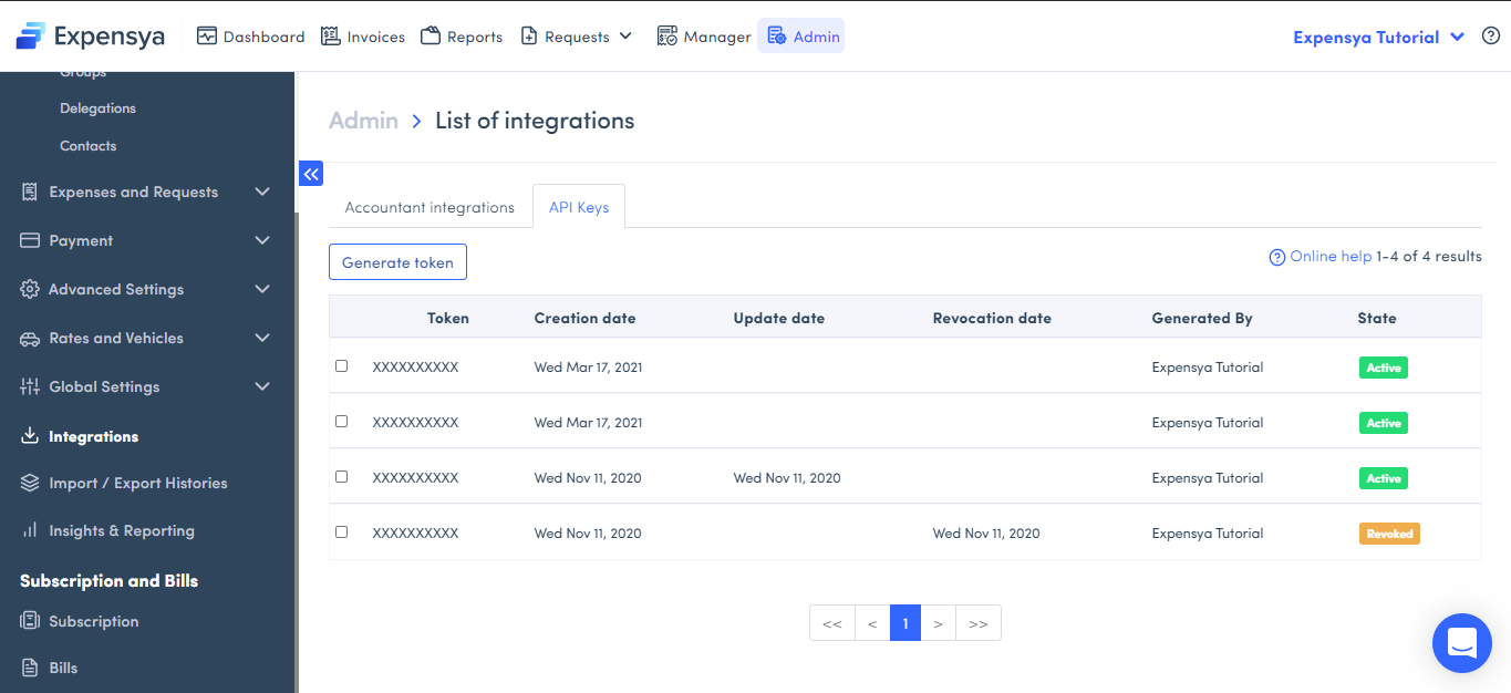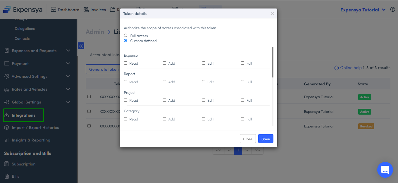 - The token generated will be used as an input for the Header of Expensya-Token.