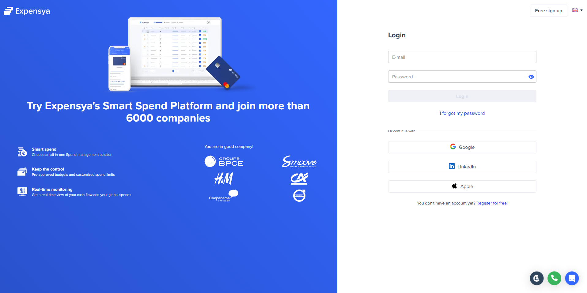 To log in with SSO from the web version of the account, users simply go to the expensya.com website and enter their business email: