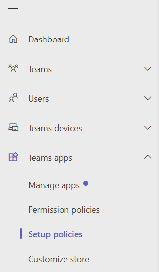- In the Teams Apps menu, select Configuration Policies