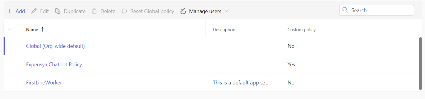 - Choose the organization's default policy from the list