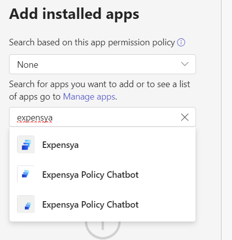 - Select the group of users concerned with the installation of Expensya in Teams (Global to include everyone in the organization)