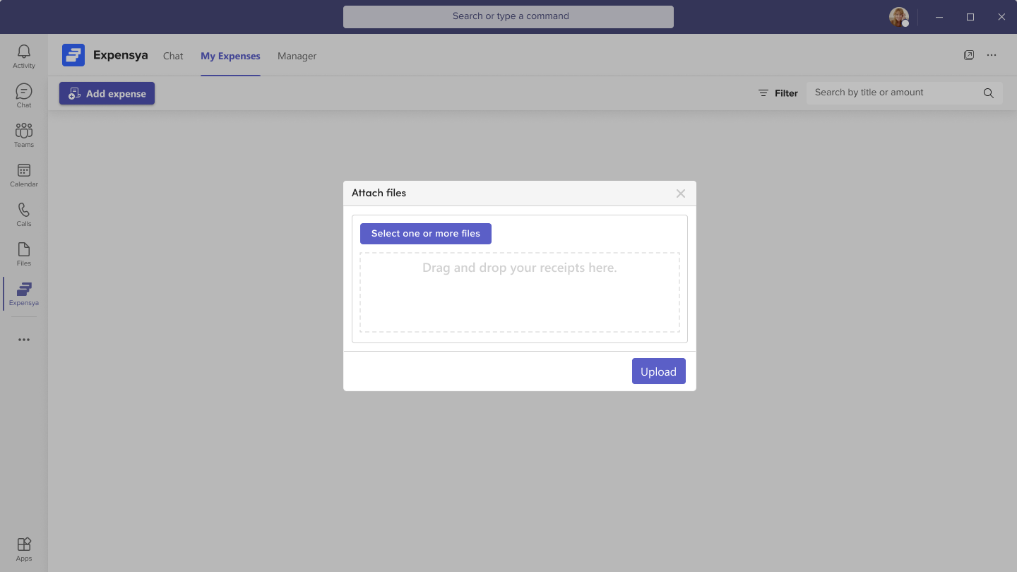 - Add Expense: From the My Expenses tab, you can easily add invoices from Microsoft Teams. Click on Add expense button then Select attachments from your personal folders, and the fast scan will be run automatically. Multiple files can be added at once.