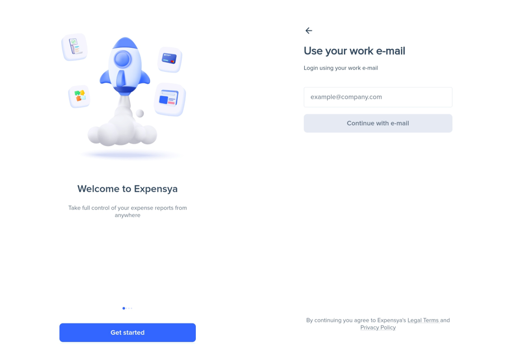 - Log in using your credentials (professional email address and password associated with your Expensya account).