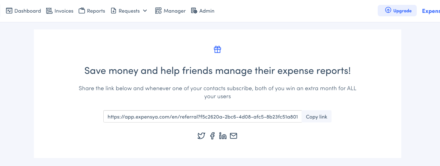 - Copy the link and send to your contacts and both you win and extra month on every licence !