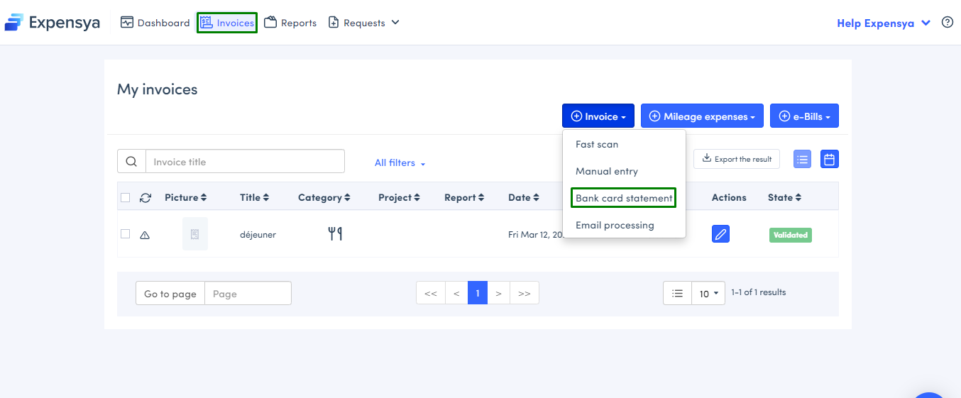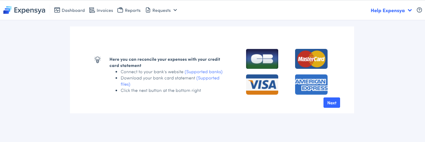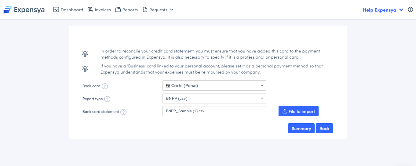 The web version of Expensya enables you to import your credit card statement, so that you can compare more effectively what exists in Expensya and the transactions shown on your statement.