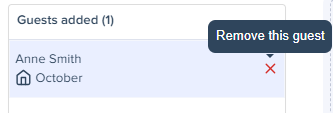 To remove one or more guests that you have previously added to an expense, you need to click on the red cross next to the guest's name, as shown in the image below.