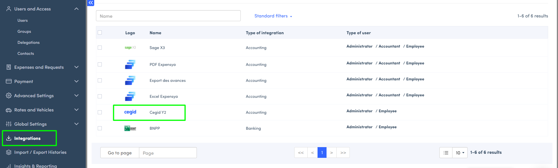 Expensya allows you to export your reports under several export formats from the Integrations submenu.