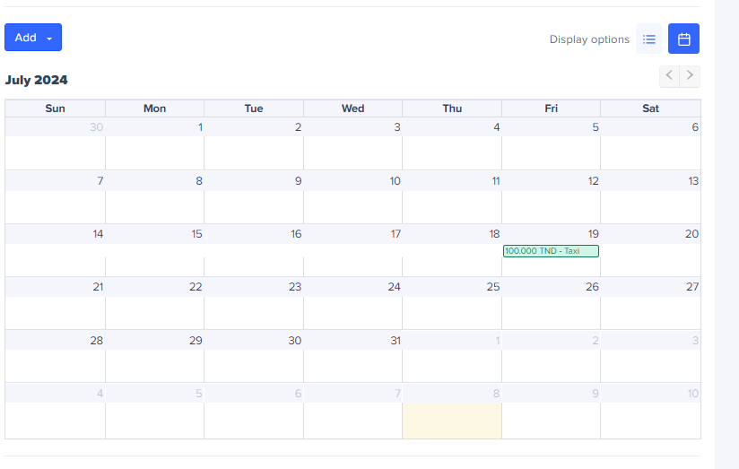 Note: If you click on any expense in calendar mode, the expense form will open, allowing you to make changes.