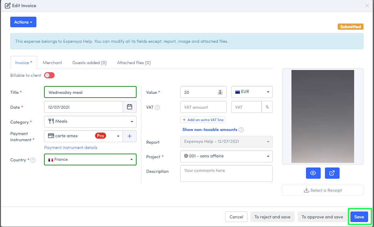- Modify the expense and Save