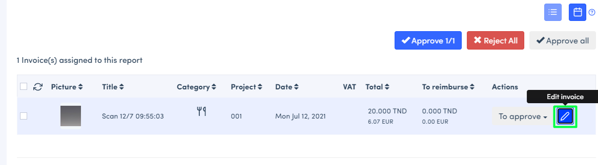 - Access the report by clicking on it, then click the Edit expense button.
