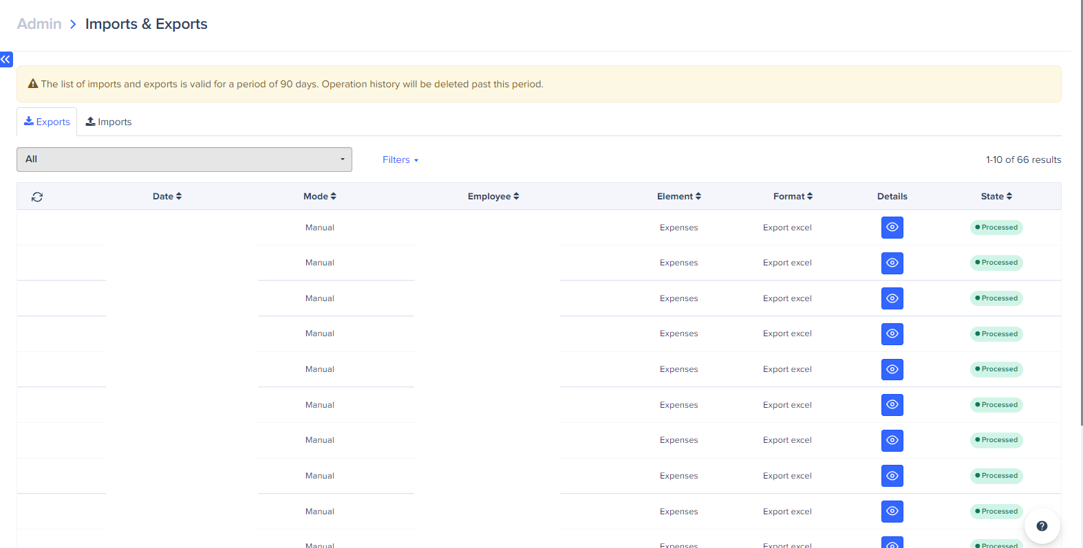 Additionally, Expensya offers a record of data integrations and exports for administrators.
