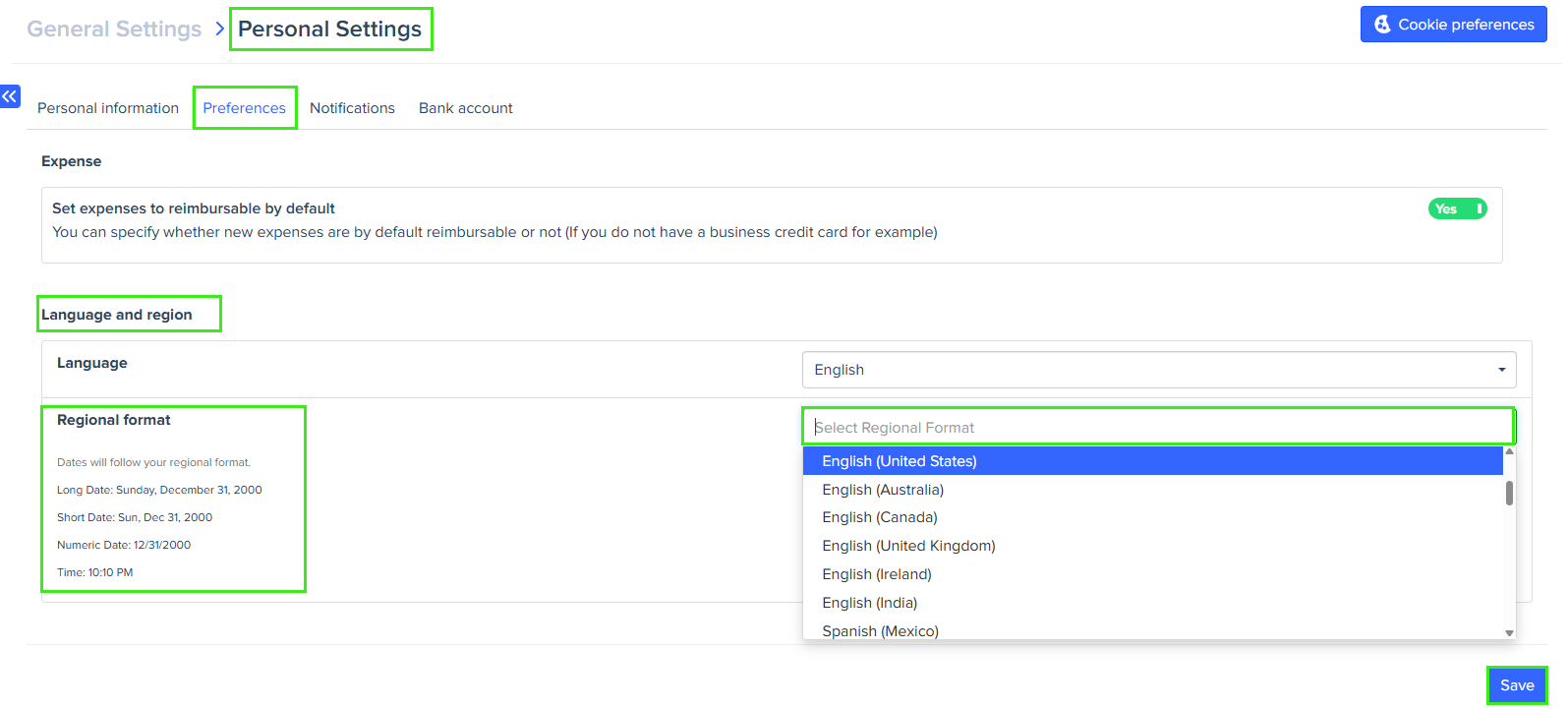 If no preferences are set, Expensya defaults to the format based on your device or browser’s regional settings.